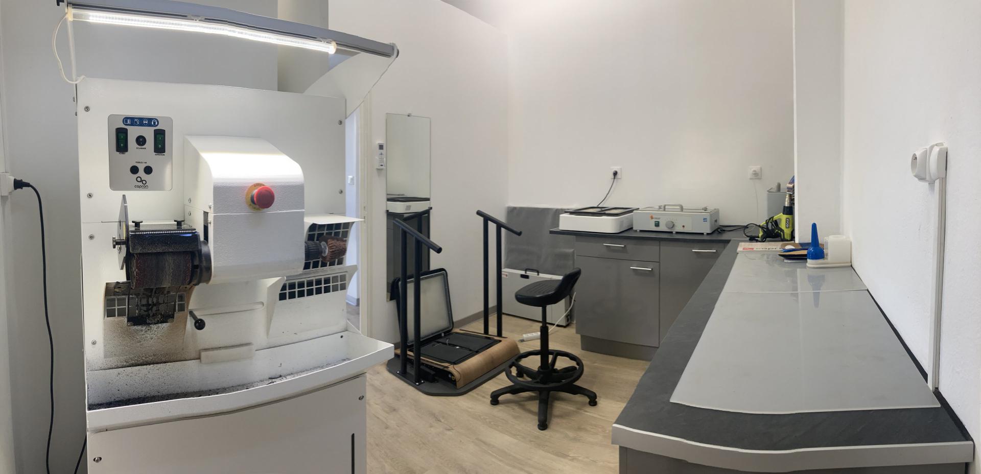Après avoir effectué un bilan en salle d’analyses et accompli quelques formalités administratives, je vous recevrai dans une des deux salles dédiées à la fabrication de ceintures sur mesure ou d’orthèses thermoformées.